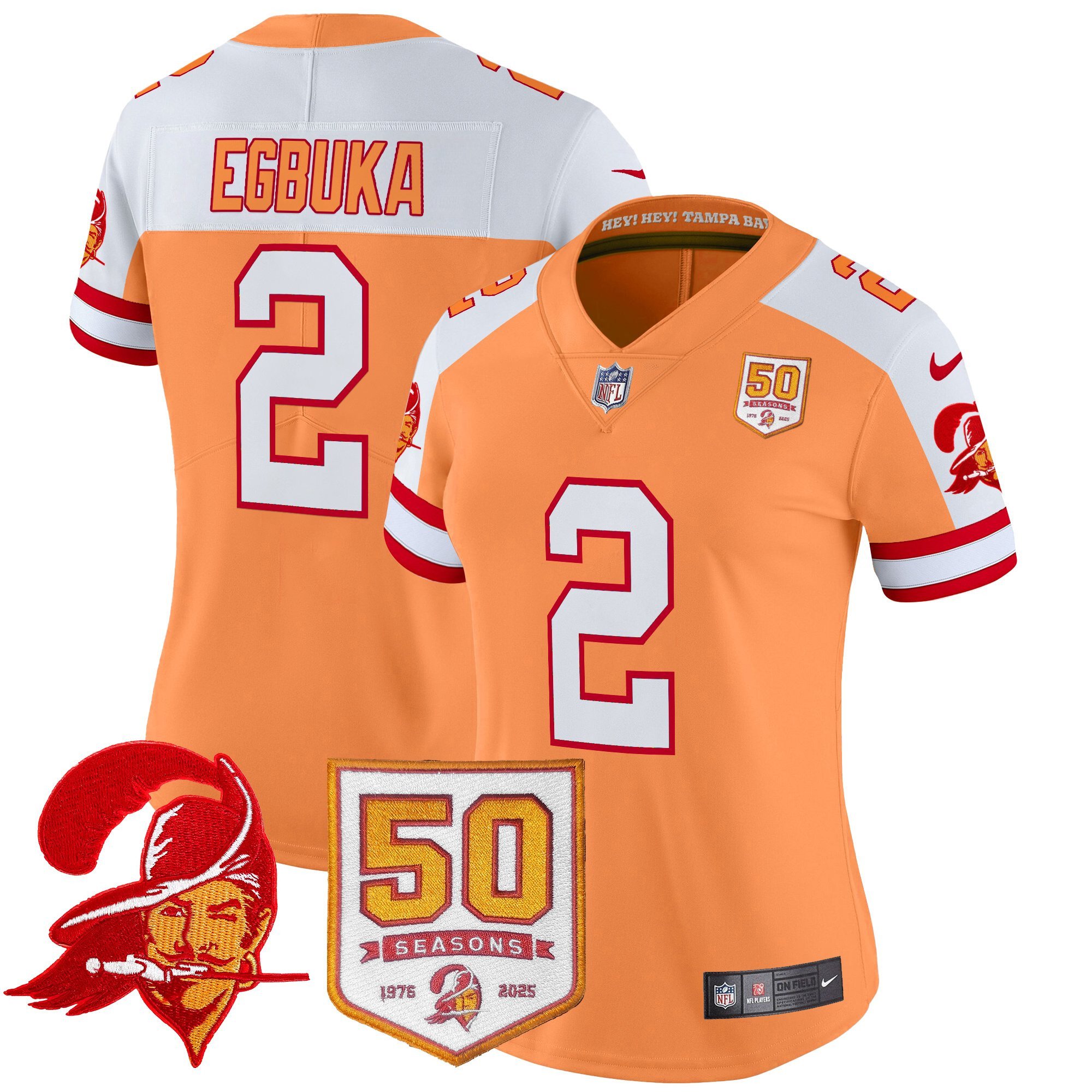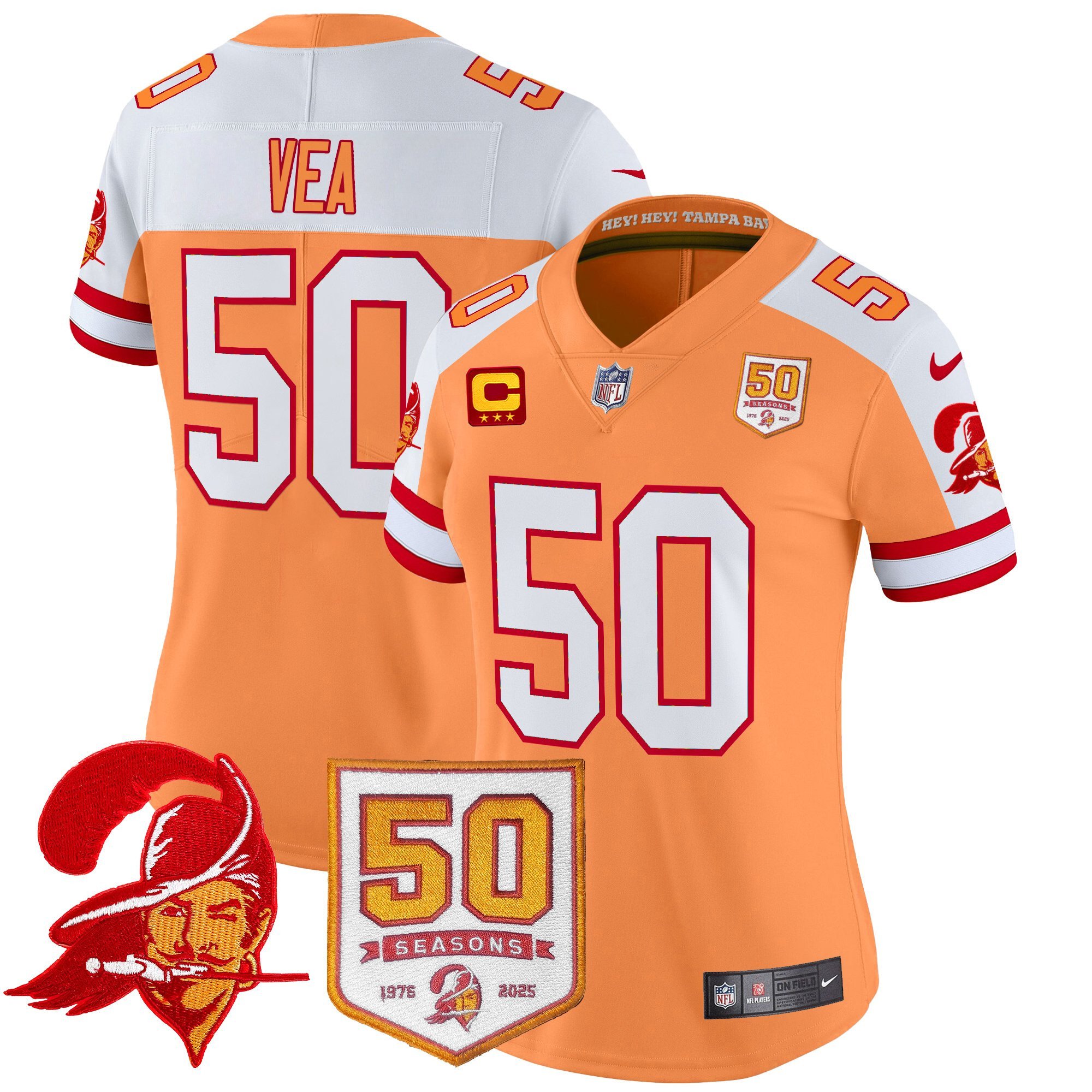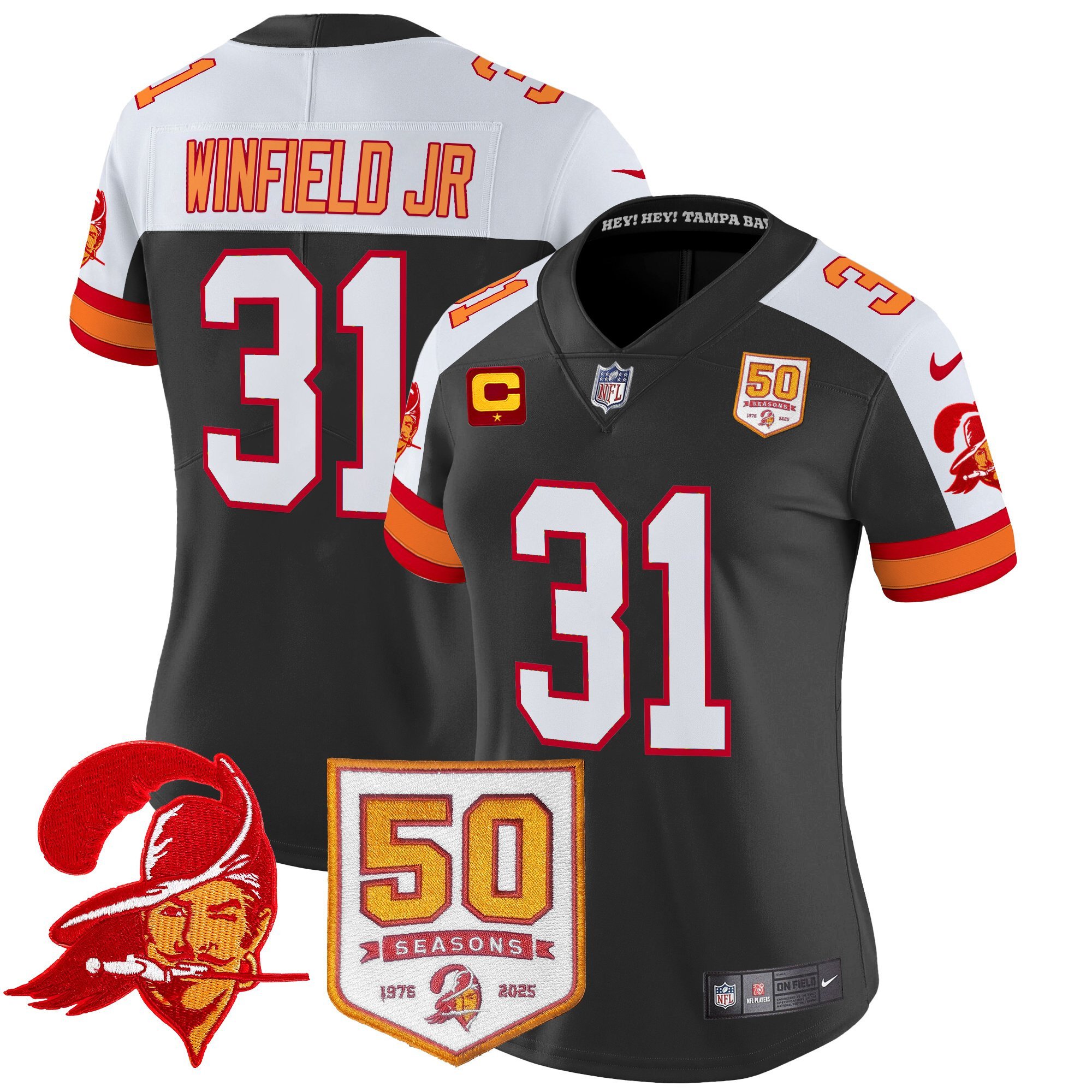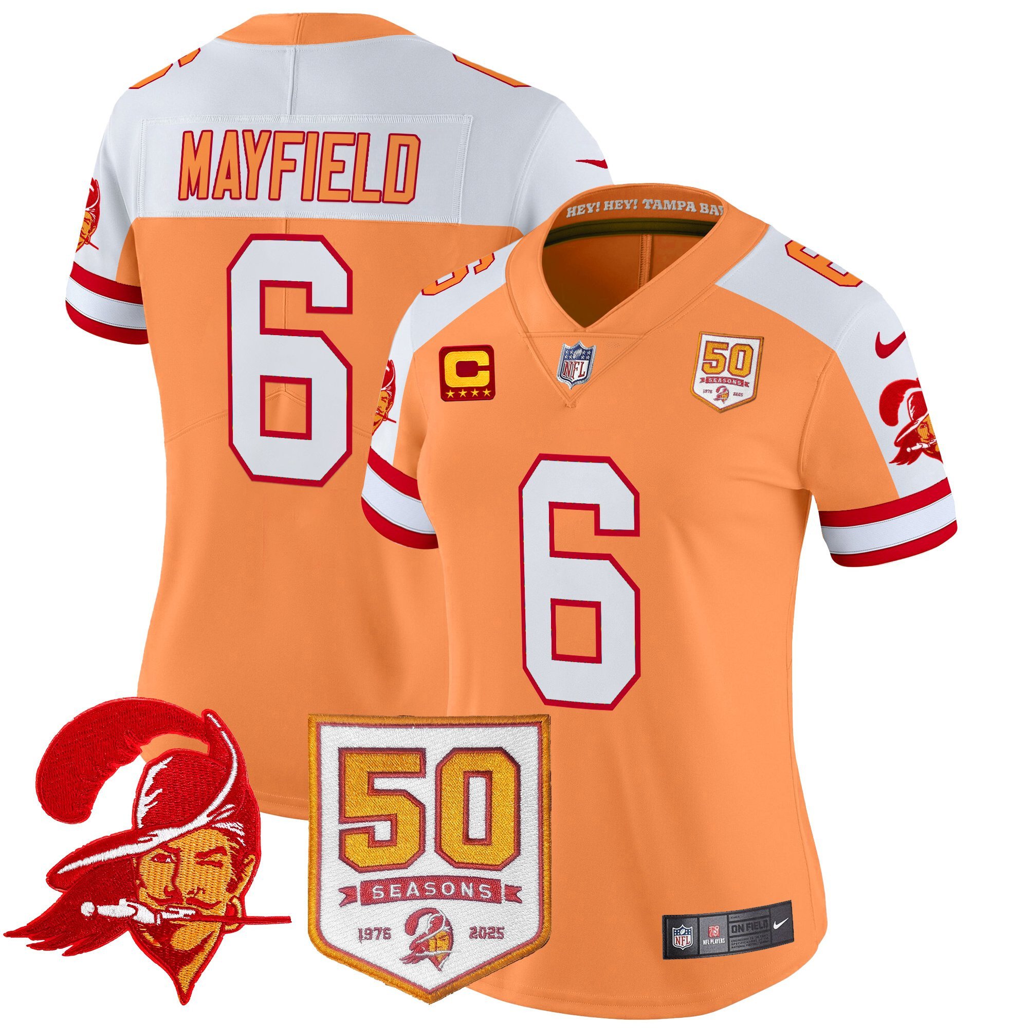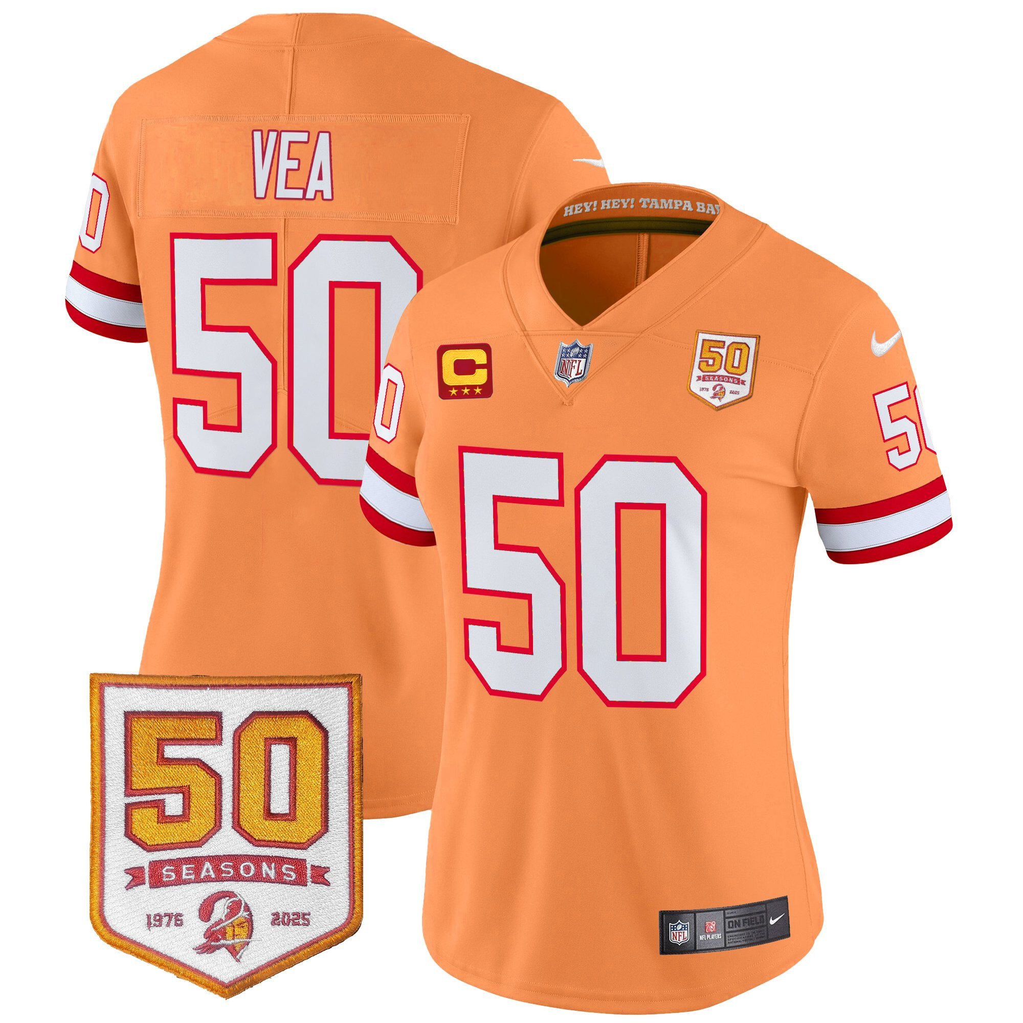 Women’s Tampa Bay Buccaneers Throwback 50th Season Patch Vapor Limited Jersey – All Stitched