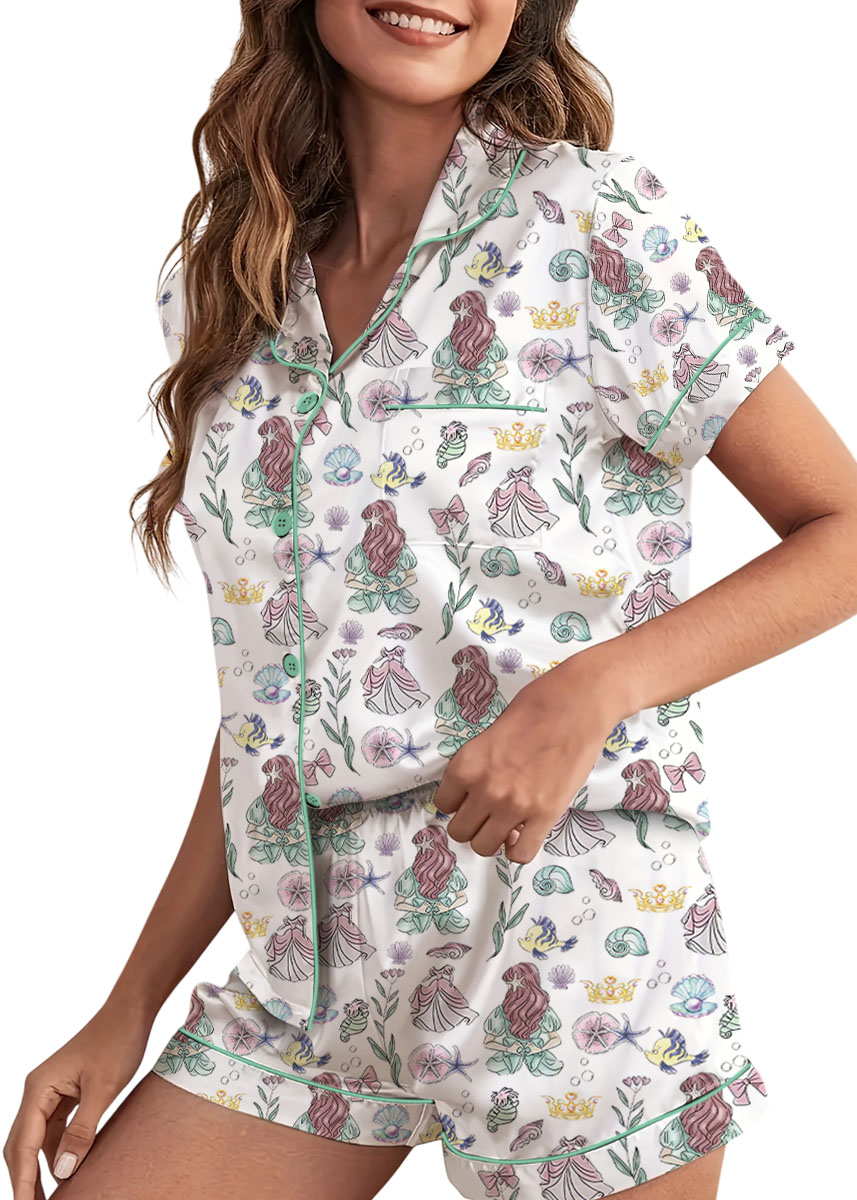 - Short-sleeve, button-front design with a turn-down collar, chest pocket, and contrast piping—classic and stylish for sleepwear, loungewear, or hosting guests.