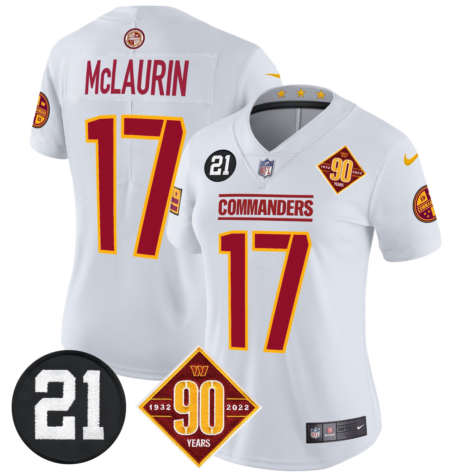 Women’s Washington Commanders 90th & Sean Taylor Patch Vapor Limited Jersey – All Stitched