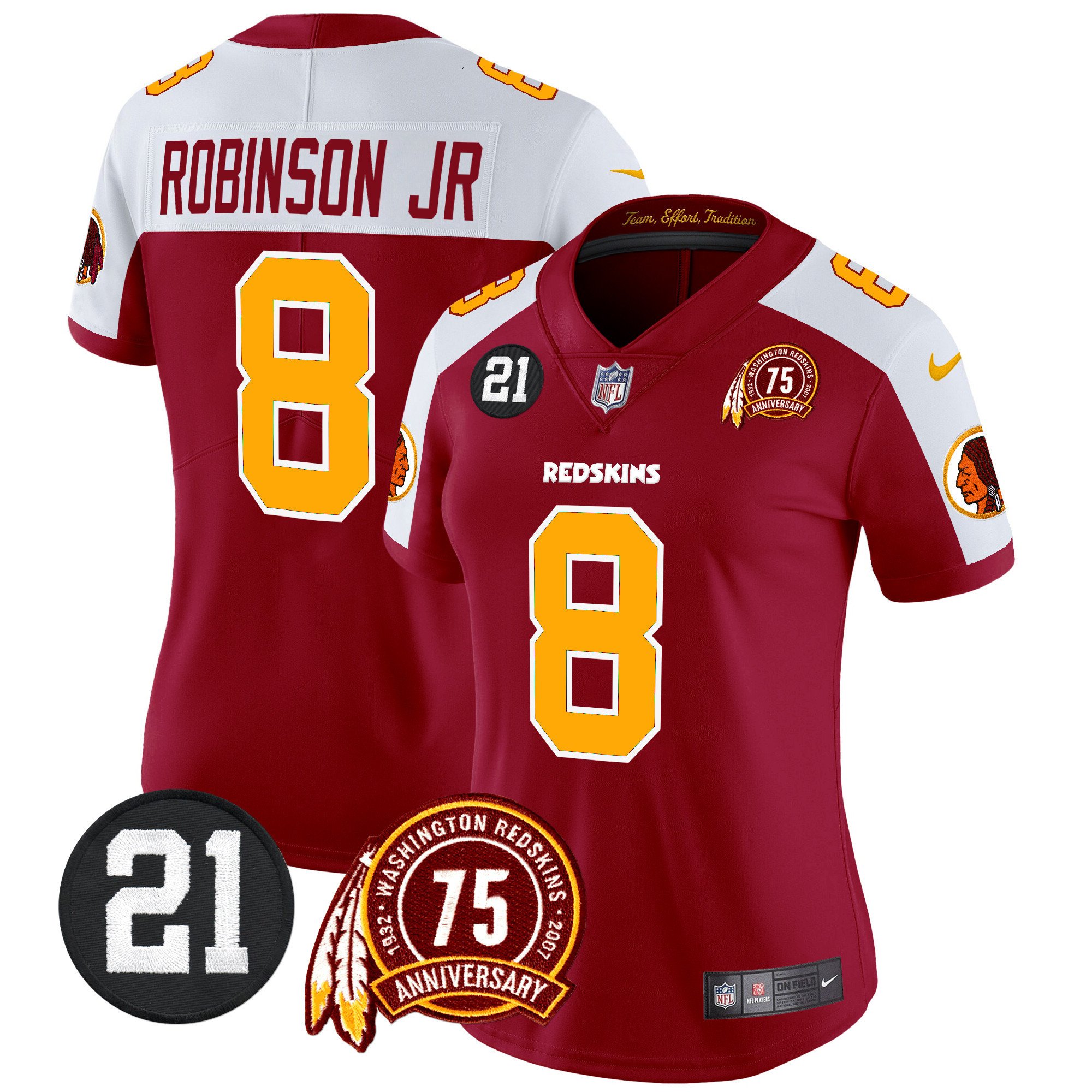 Women’s Washington Redskins 75th & Sean Taylor Patch Vapor Limited Jersey – All Stitched